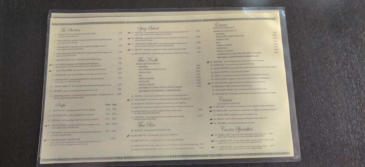 Aroma Thai Restaurant Menu
